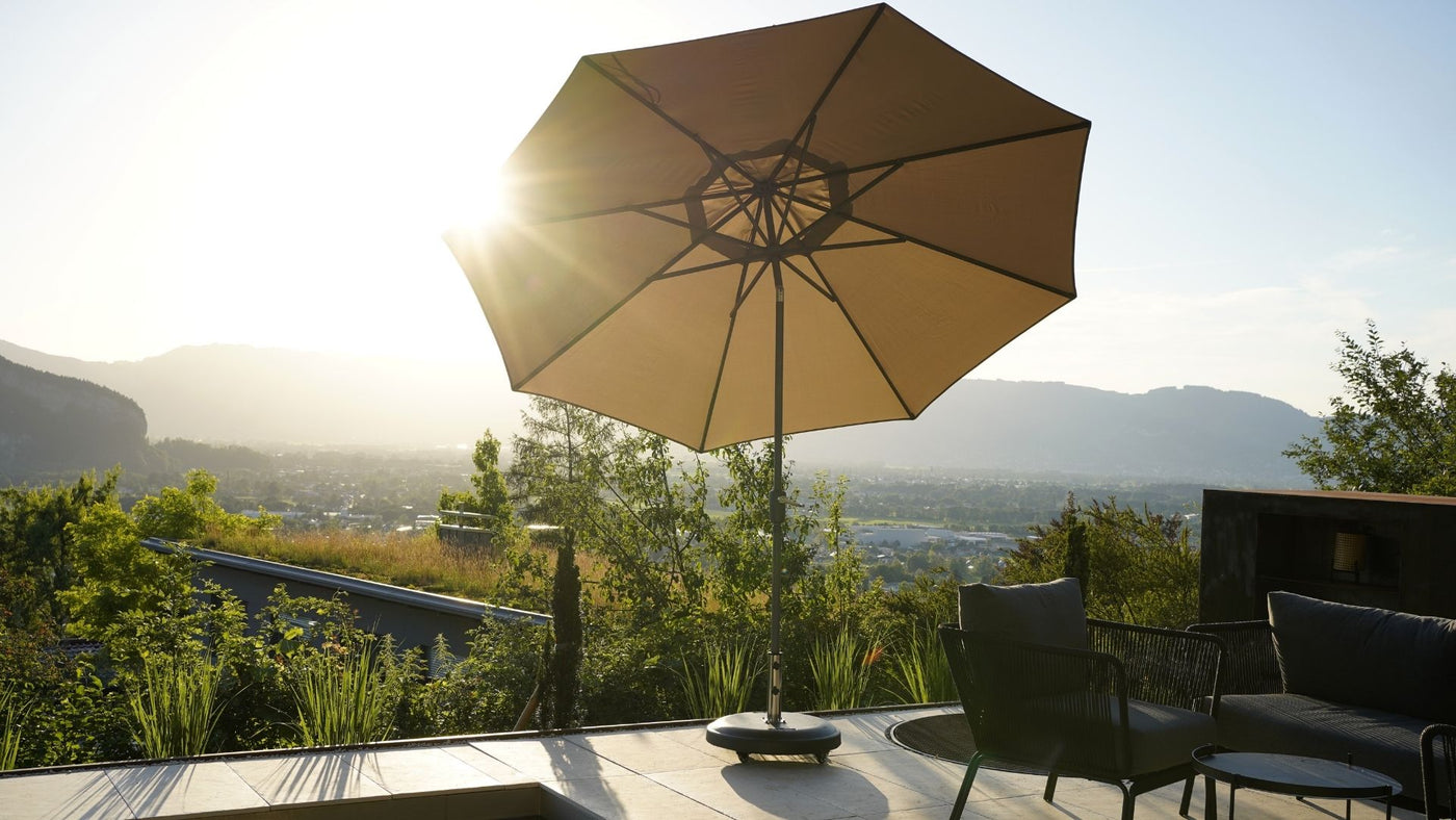 Not at all. Example: the 9′ patio umbrella accounts for roughly 90% of all sales in the United States. Some manufacturers measure across the bottom diameter while some (like us) measure the arc of the umbrella. Why does this matter? To get to a 9′ diameter underneath an umbrella a manufacturer must produce a 9.5′ frame.